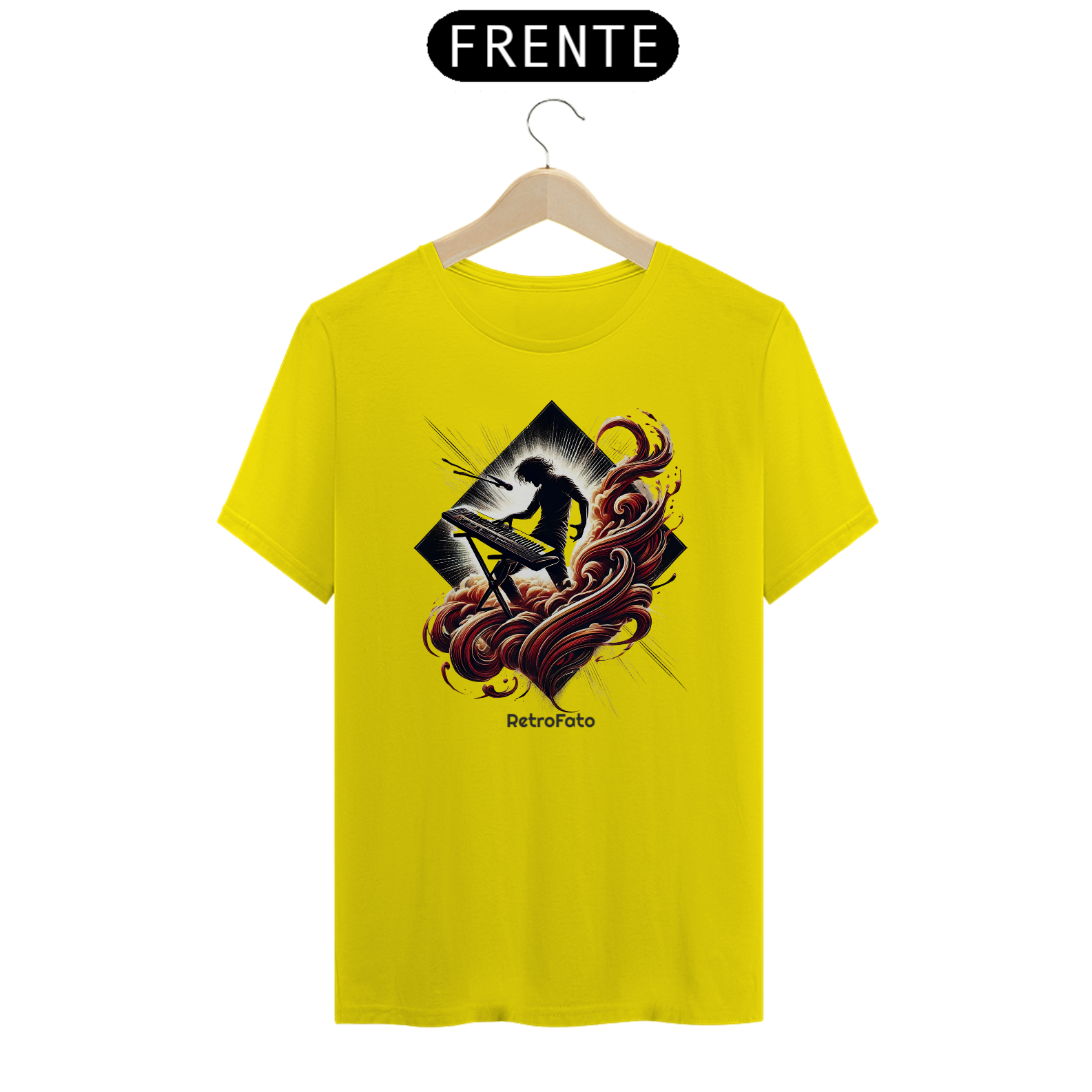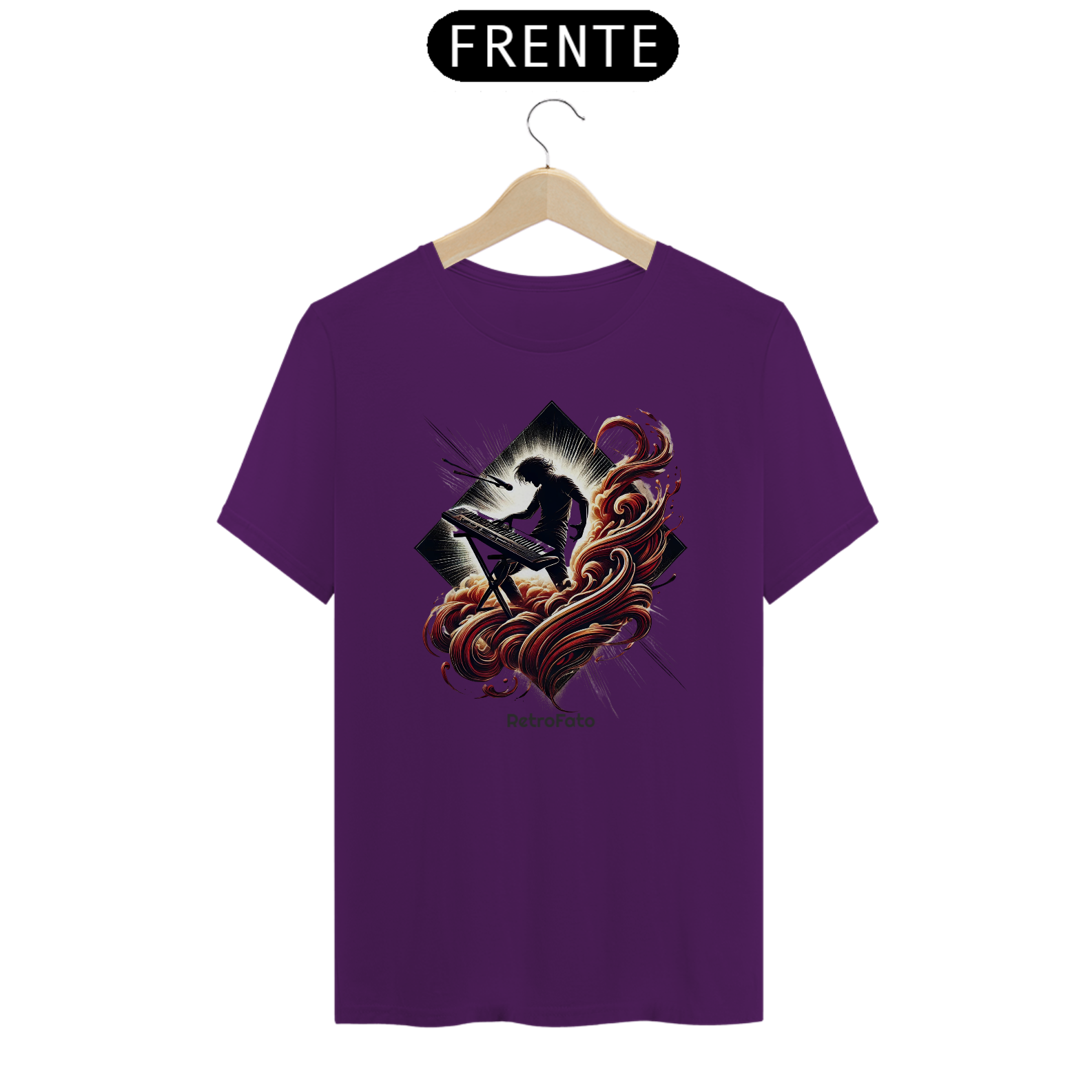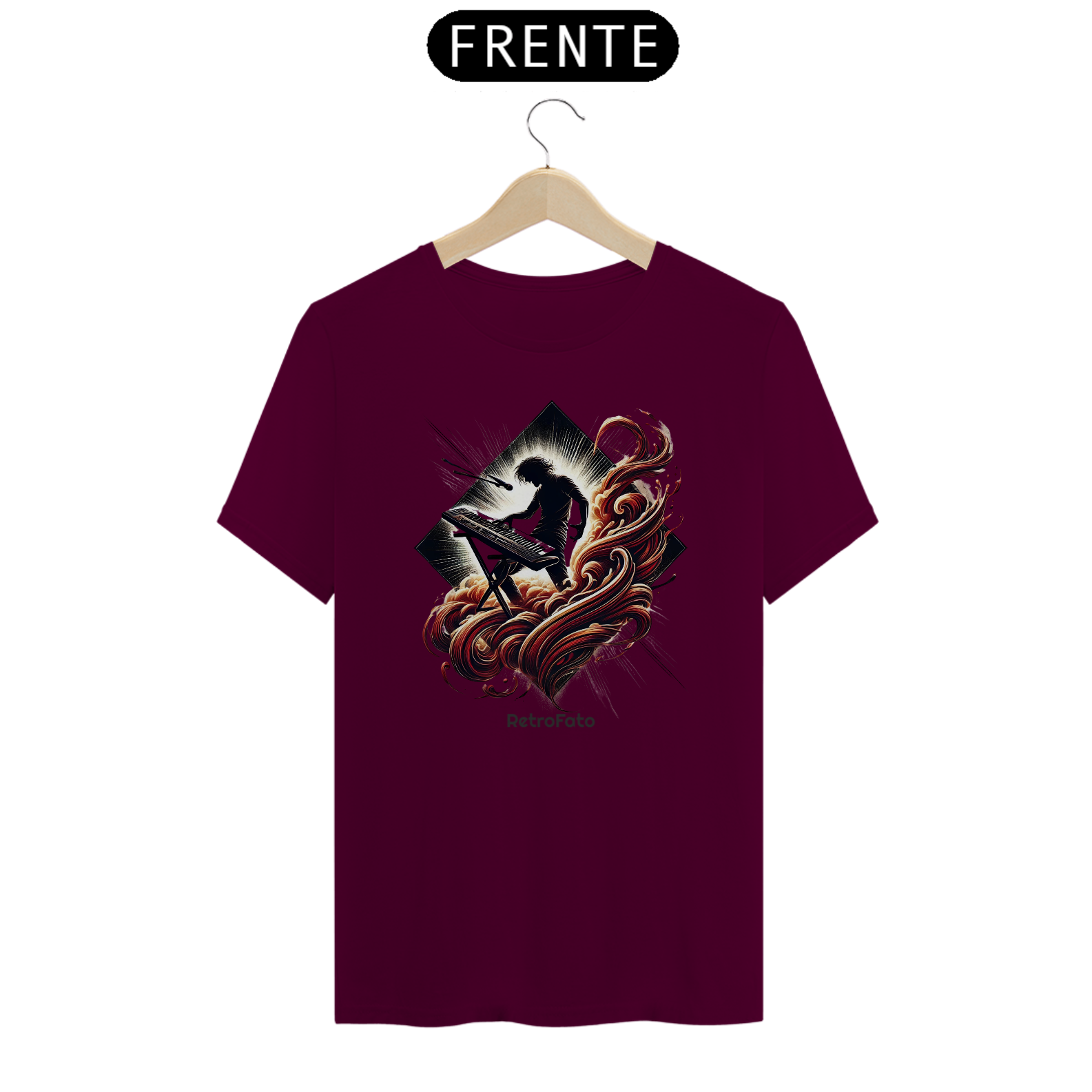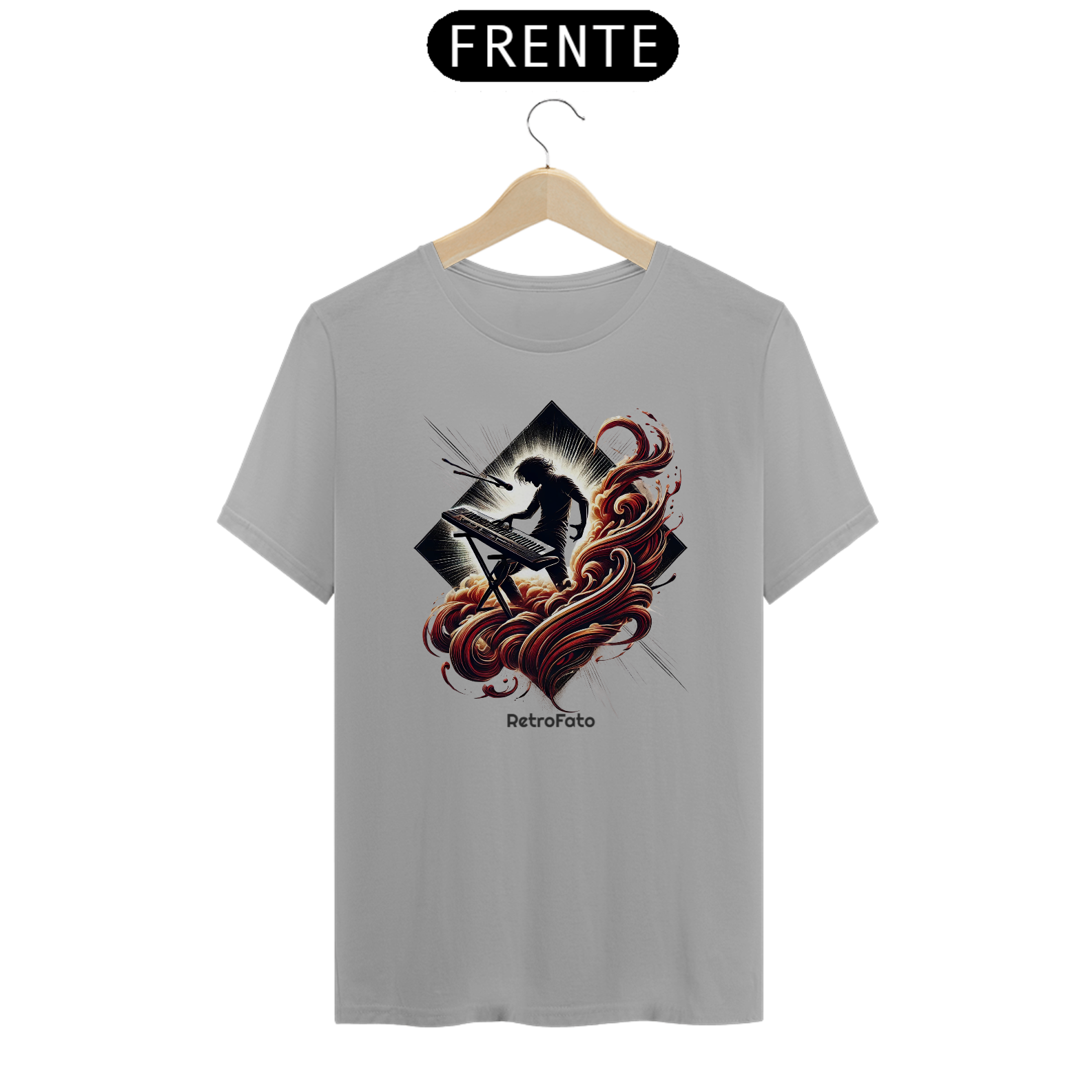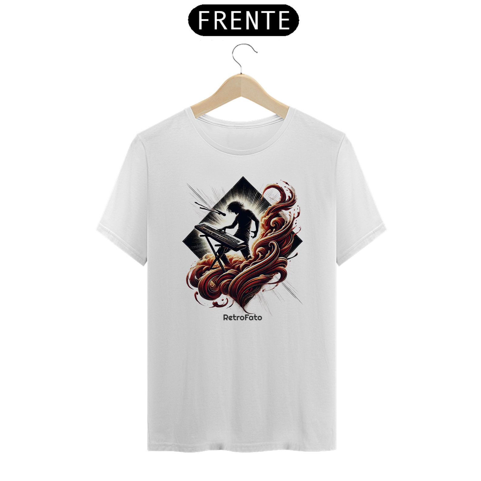 A camiseta Silhueta Tecladista traduz a presença marcante dos palcos em uma estampa que exala energia e liberdade.