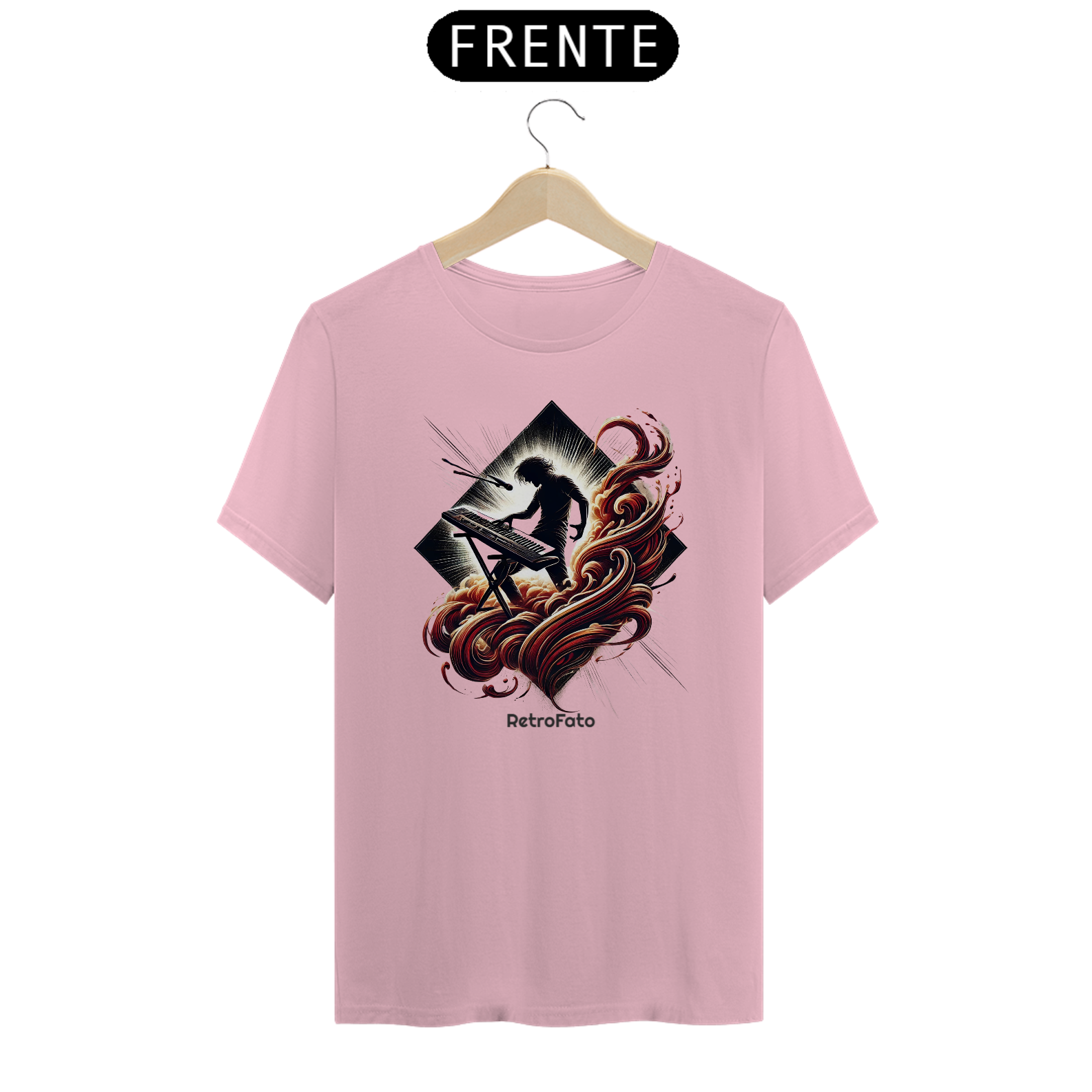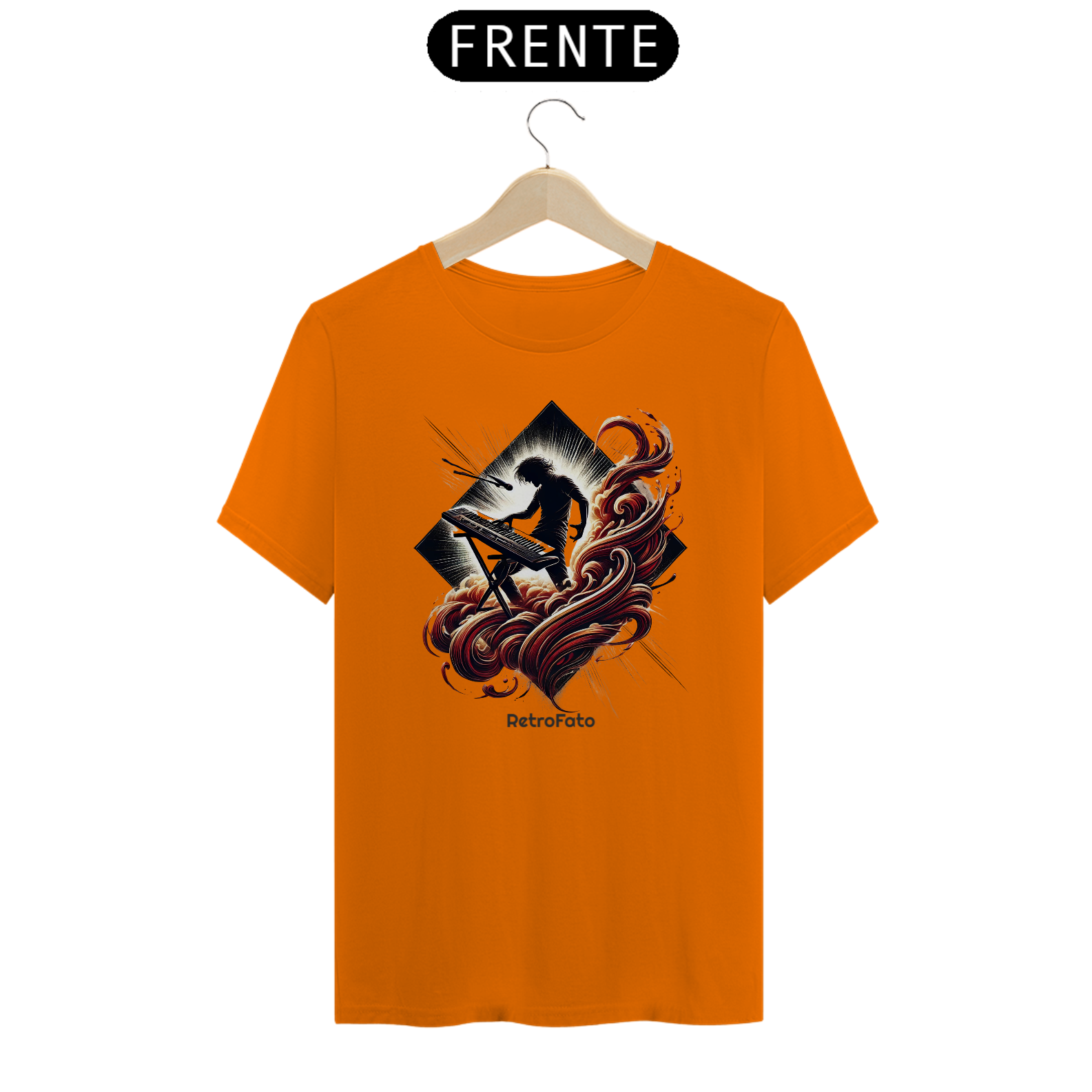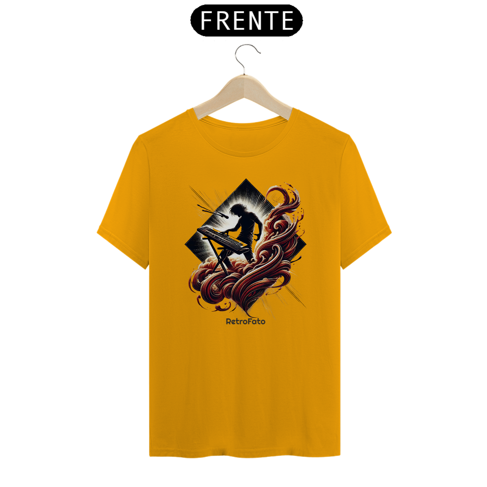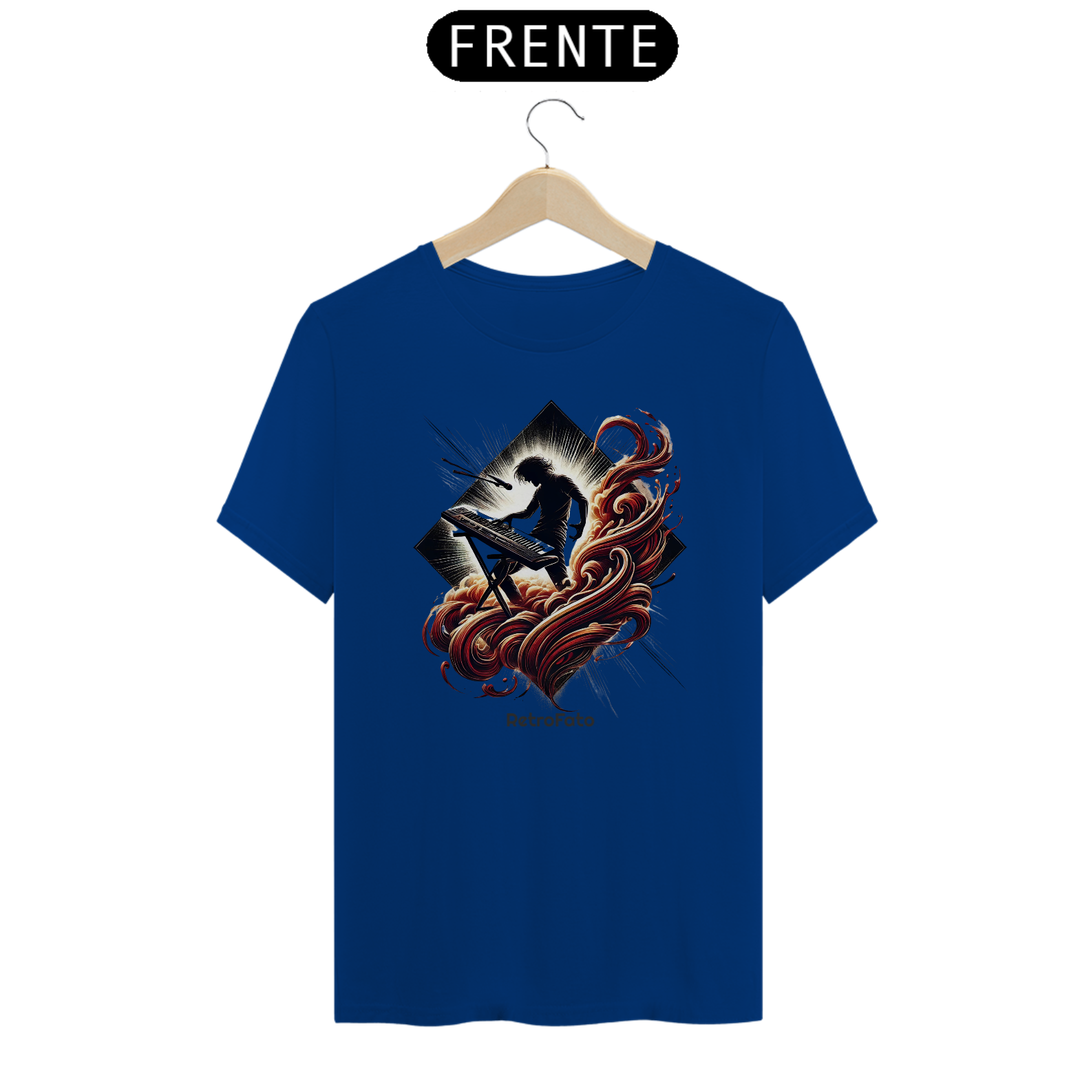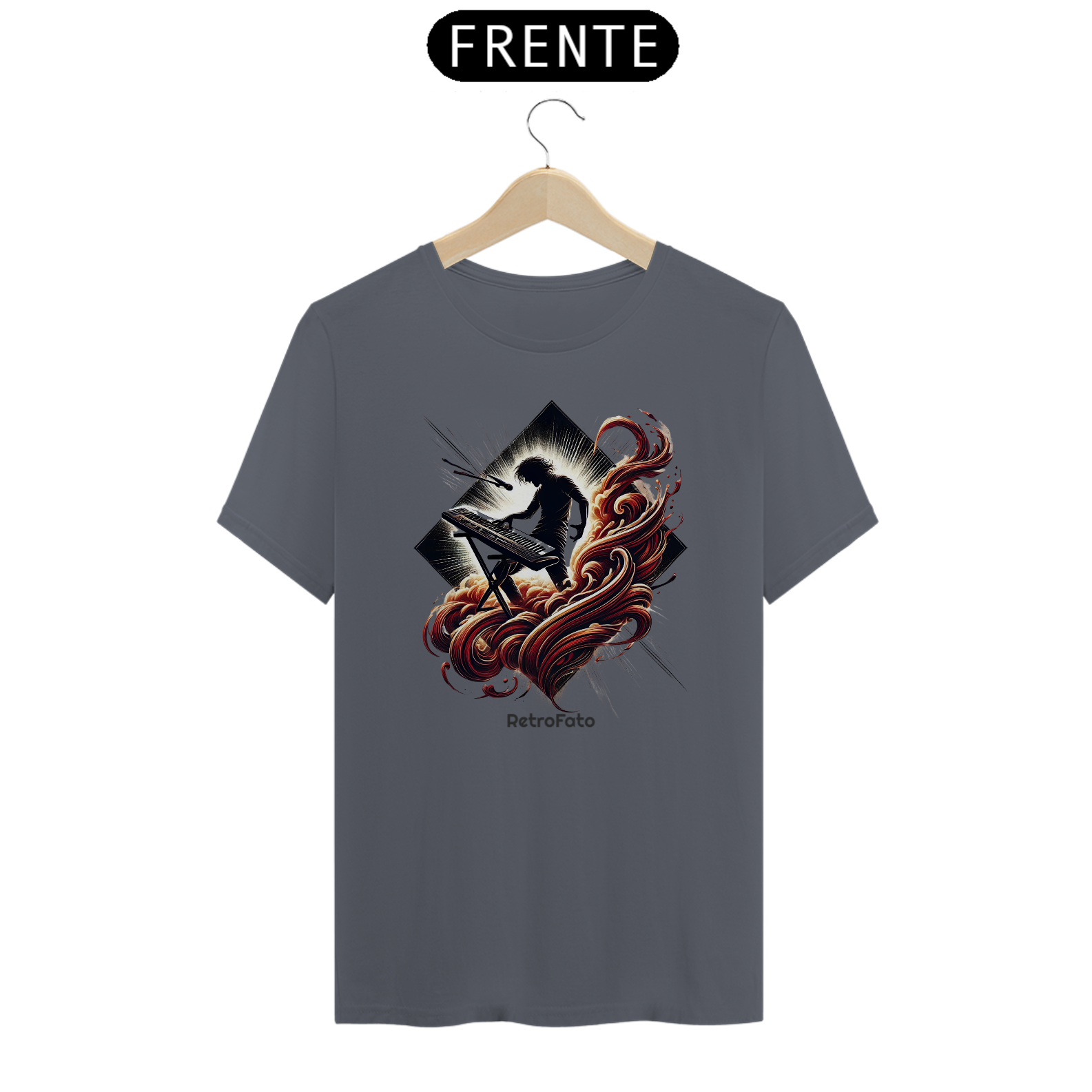A camiseta Silhueta Tecladista traduz a presença marcante dos palcos em uma estampa que exala energia e liberdade.