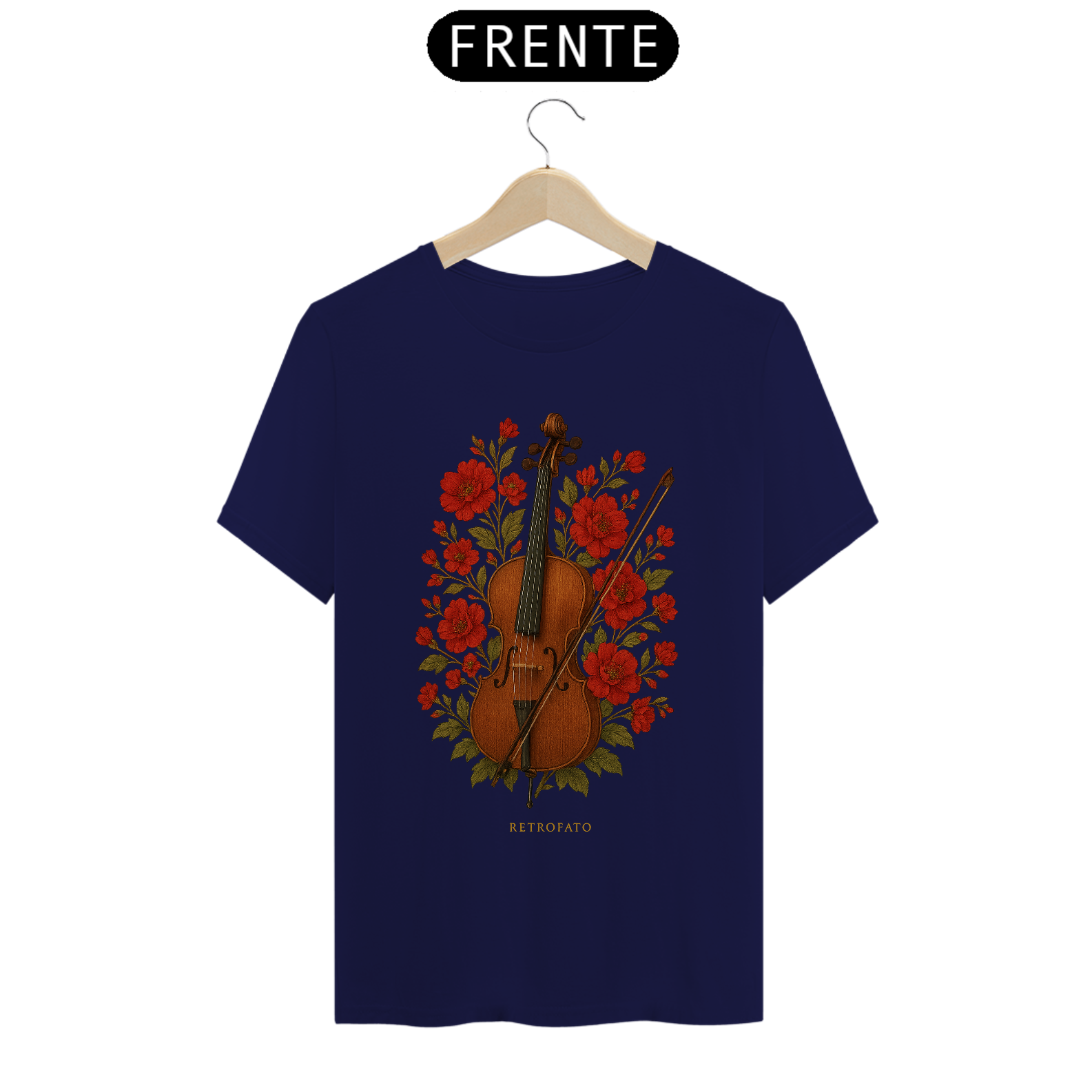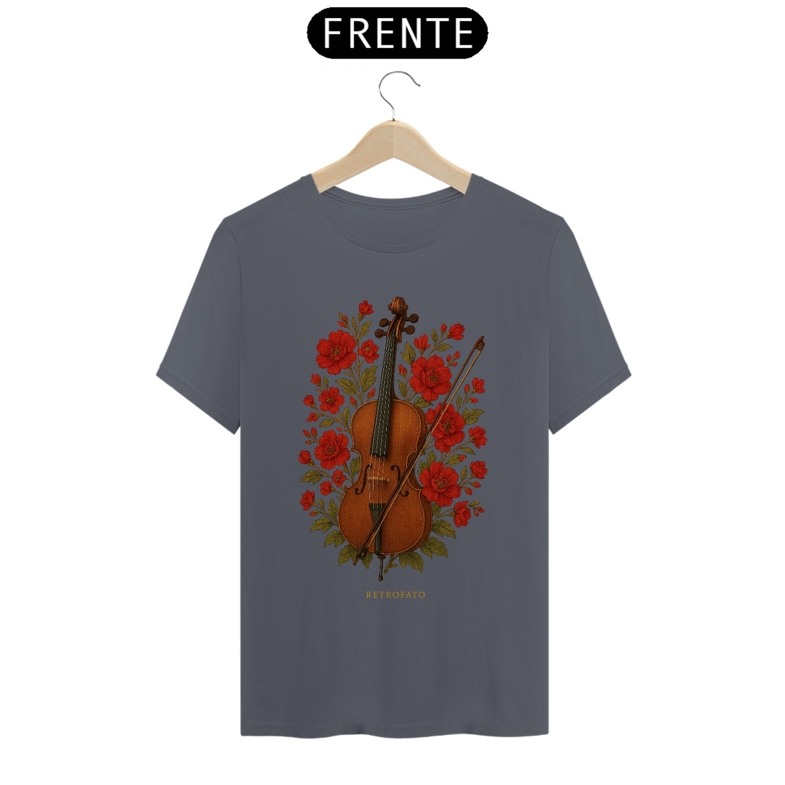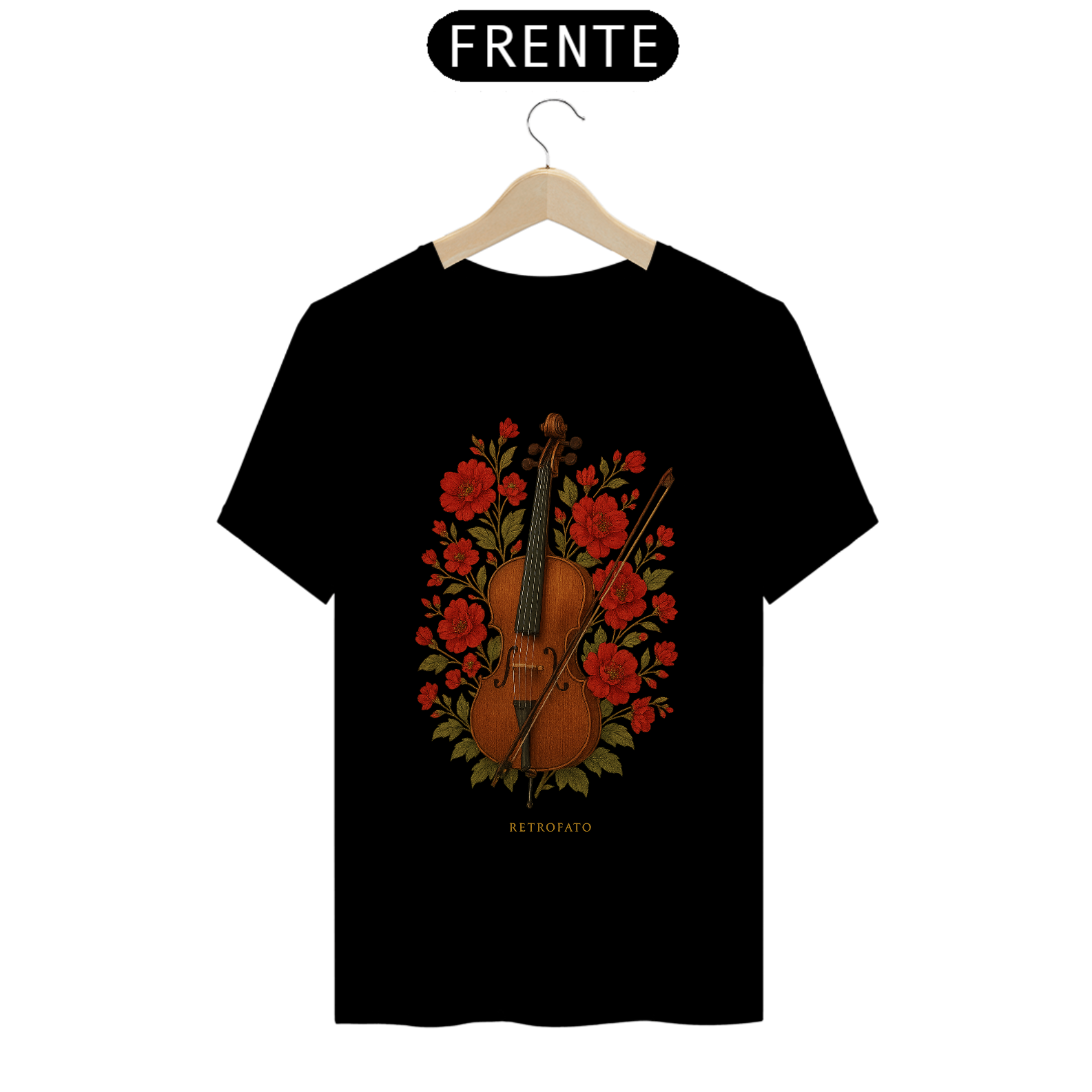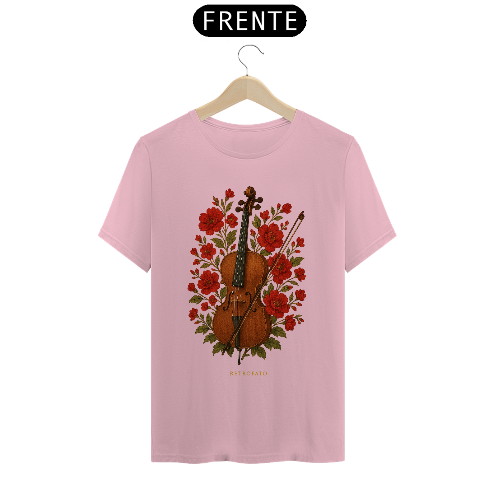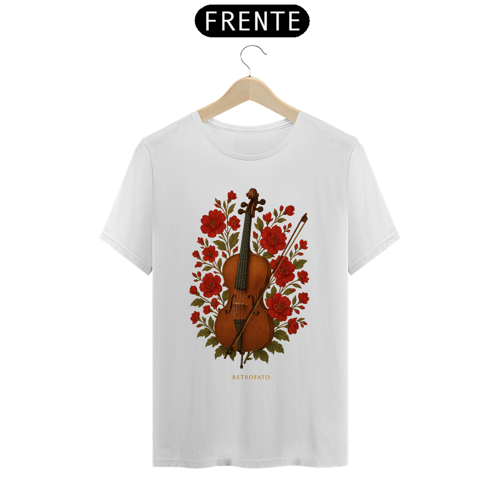 Celebre a elegância da música com esta T-shirt Classic Unissex exclusiva RetroFato. A estampa traz um violoncelo clássico envolto por vibrantes flores vermelhas, em uma composição artística que une a delicadeza da natureza com a força da música.